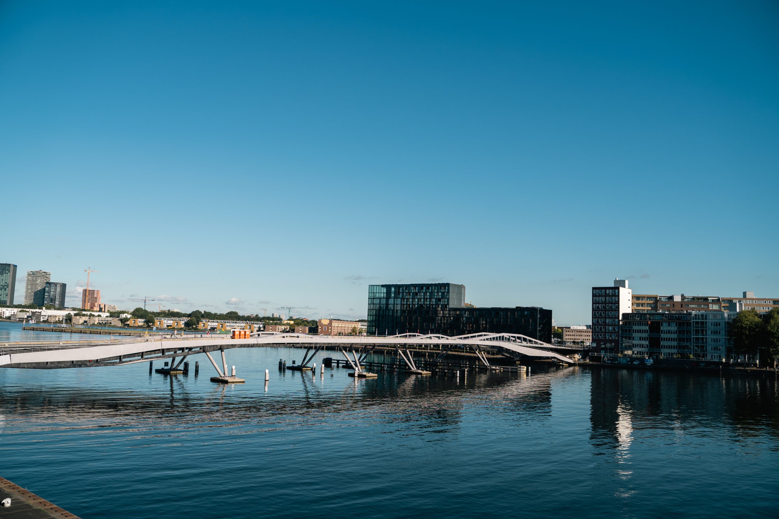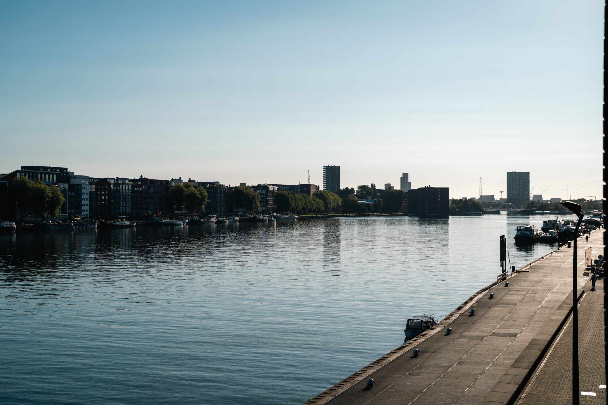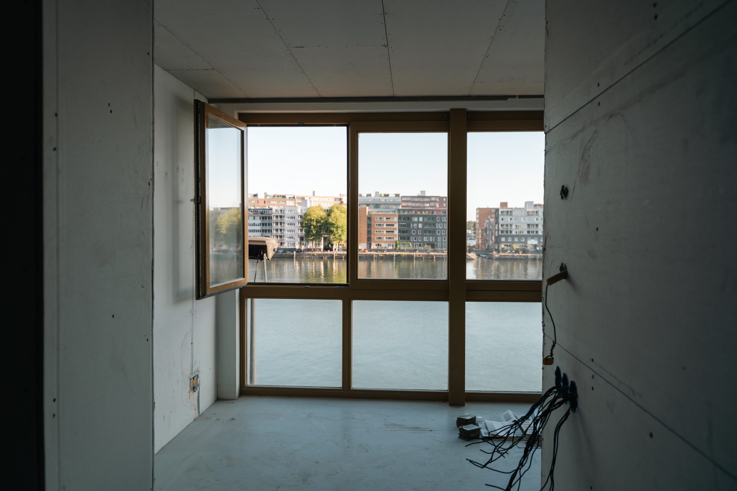 De appartementen krijgen een lichte en tijdloze basis, aangevuld met high-end afwerkingen. Maatwerkkasten, een zorgvuldig uitgewerkt lichtplan en op maat gemaakte spiegels geven de woningen karakter. De absolute troef: het uitzicht over het water. Of je nu kookt of ontspant op de bank, je blik wordt altijd naar buiten getrokken richting de Amsterdamse kade.
